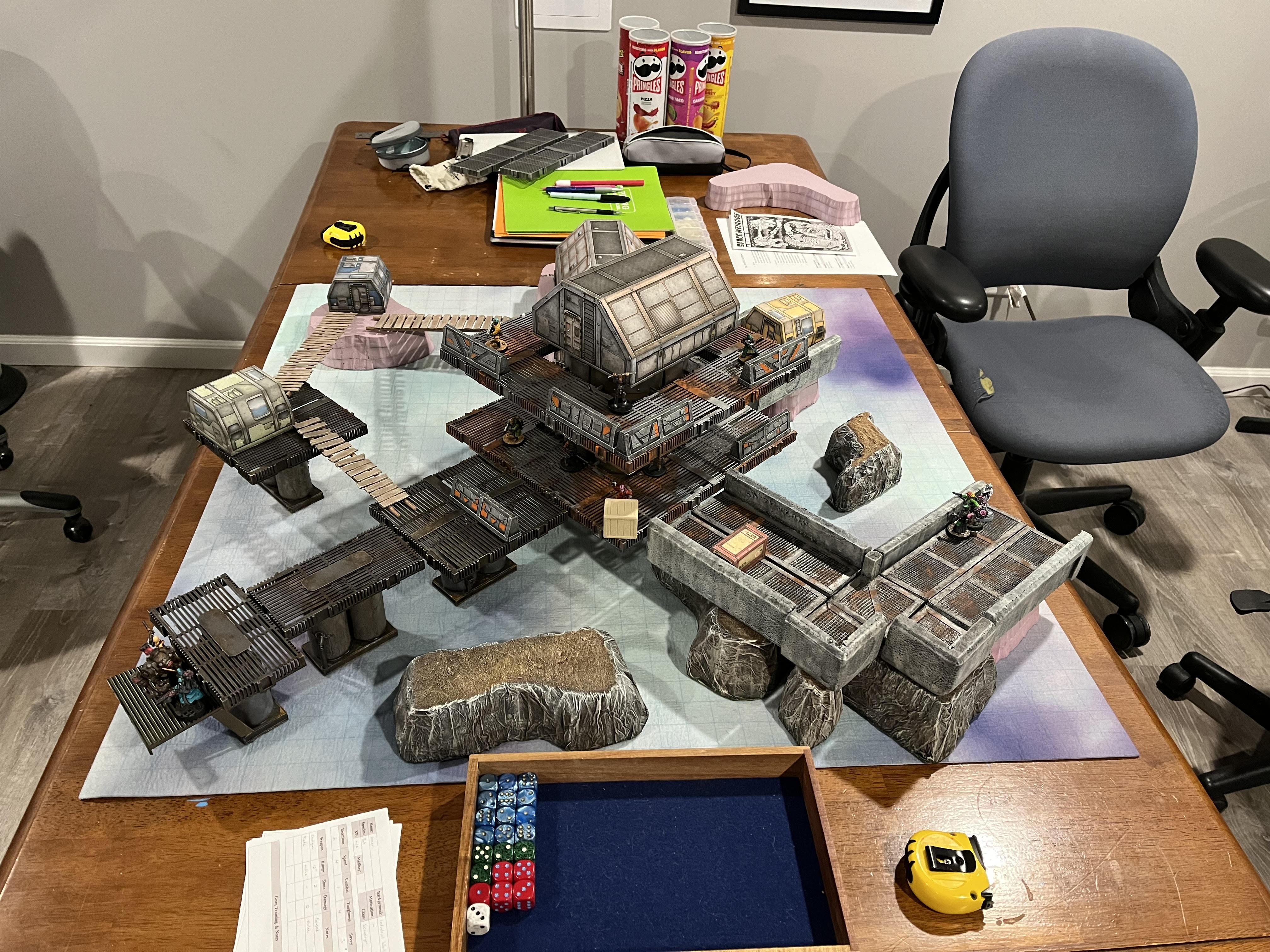 The crew was finally ready to infiltrate what they expected to be the center of Reactive Sequence’s activities on Vabenia E3 - a production facility suspended over an active caldera. They split up with half the crew going to each mooring path to try and prevent escape.
